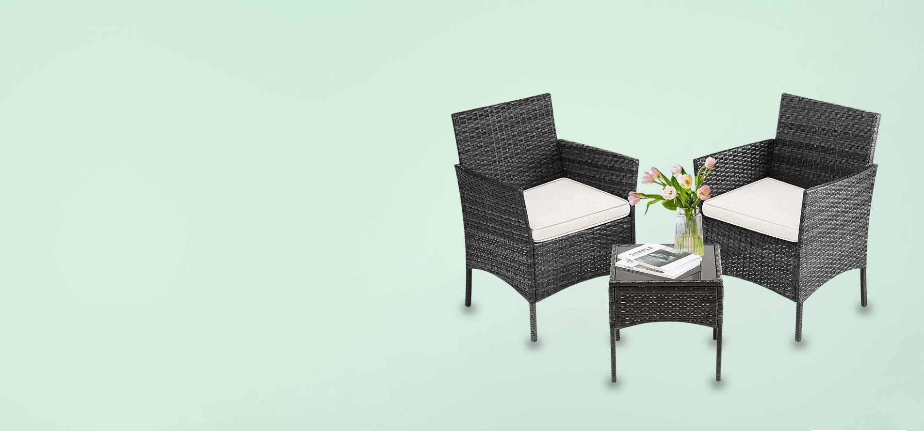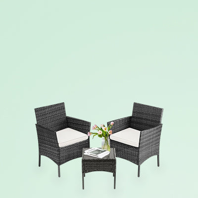 Furniture Set 3 Pieces, Outdoor Wicker Furniture with Coffee Table, Modern Rattan Patio Chairs Conversation Sets with Sofa