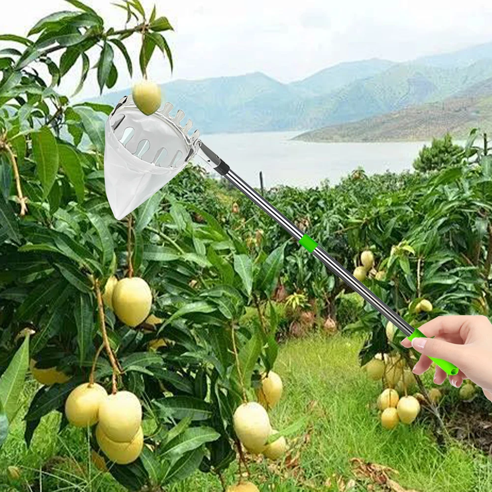 Fruit Picker Pole with Storage Bag Stainless Steel Pole Tree Picker Tree Picker Splicing Rod Fruit Picker High Tree Orchard Picking Tool for Apples Mango Lemon Orange