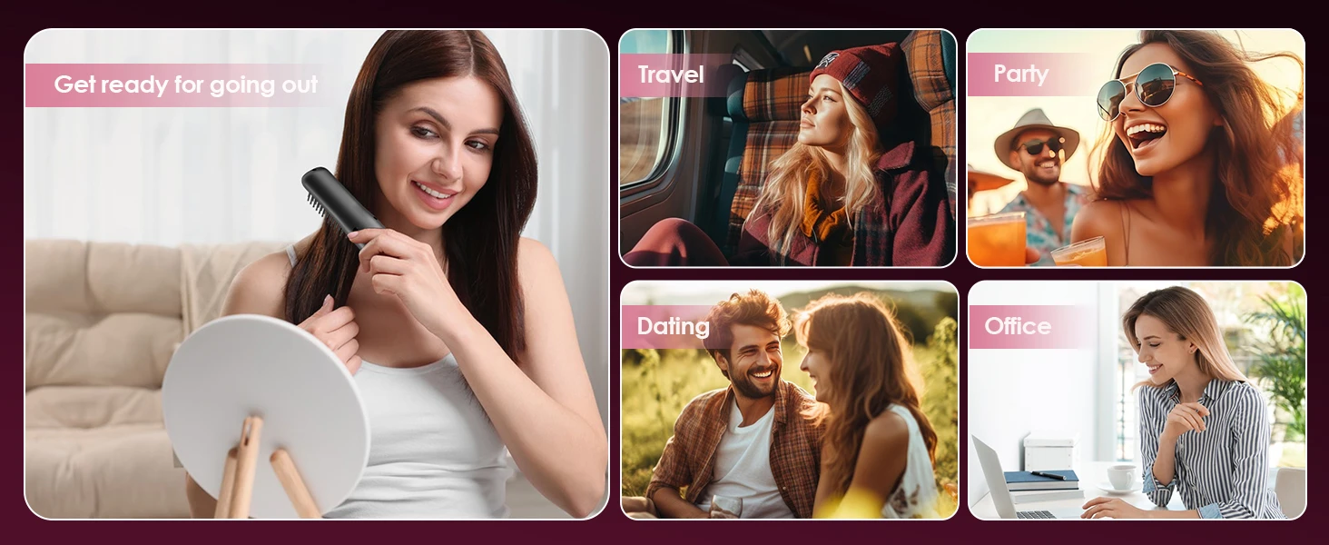 【Portable & Cordless Design, Perfect for Travel】Mini hair straightening brush weighs only 8 ounces, Its compact, lightweight design makes it easy to take anywhere – slip it into your bag, backpack, or carry-on. Enjoy styling your hair without cords or searching for outlets.NOTE: REMEMBER TO TURN OFF AIRPLANE MODE BEFORE USE