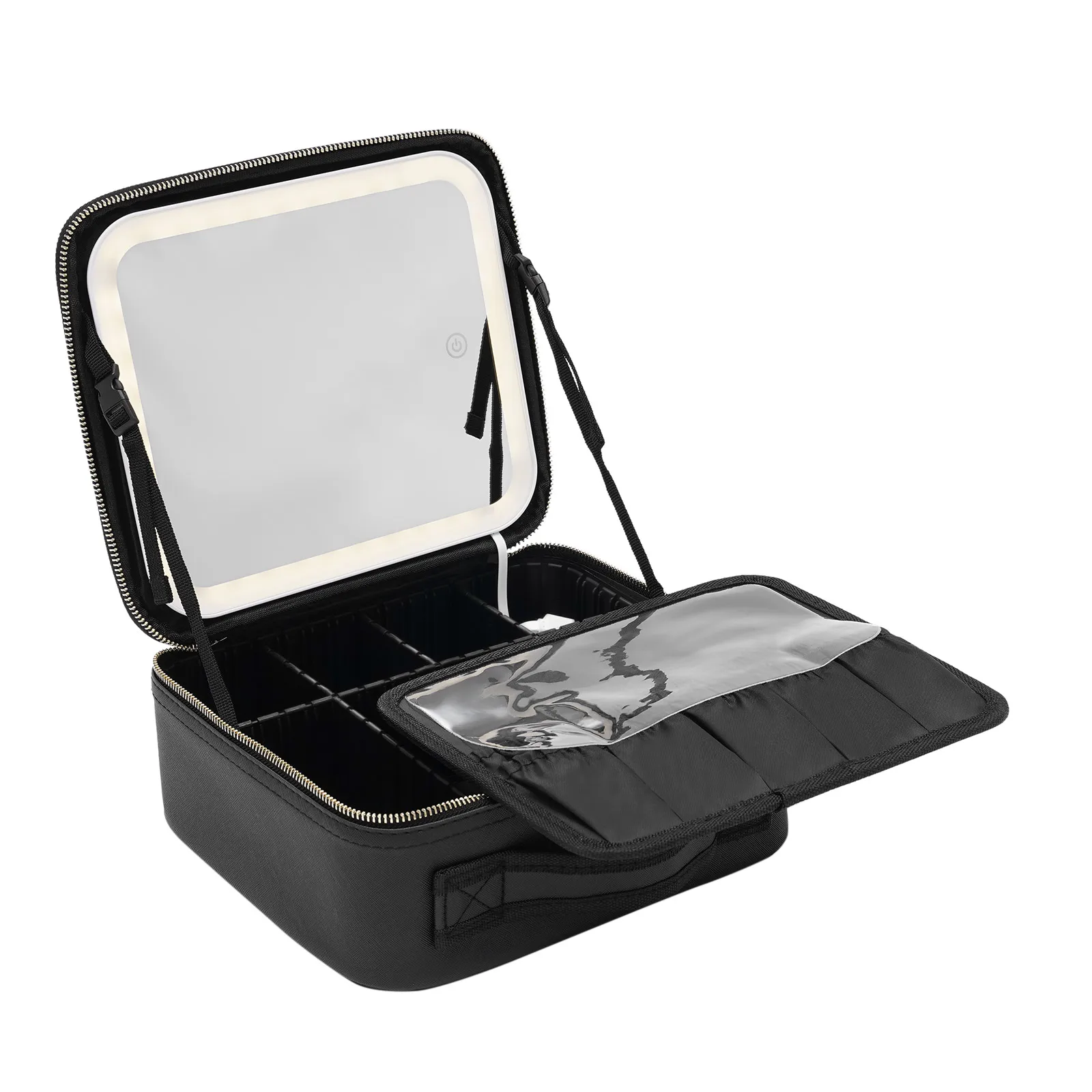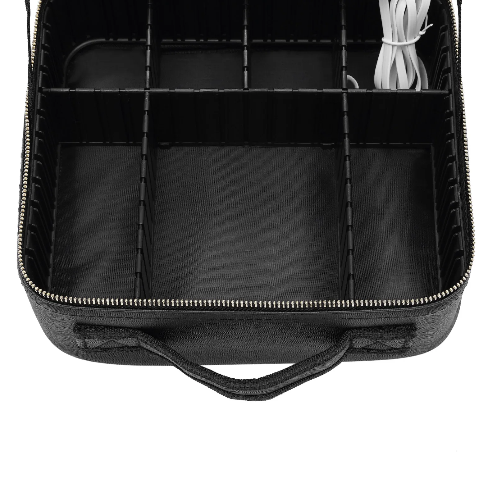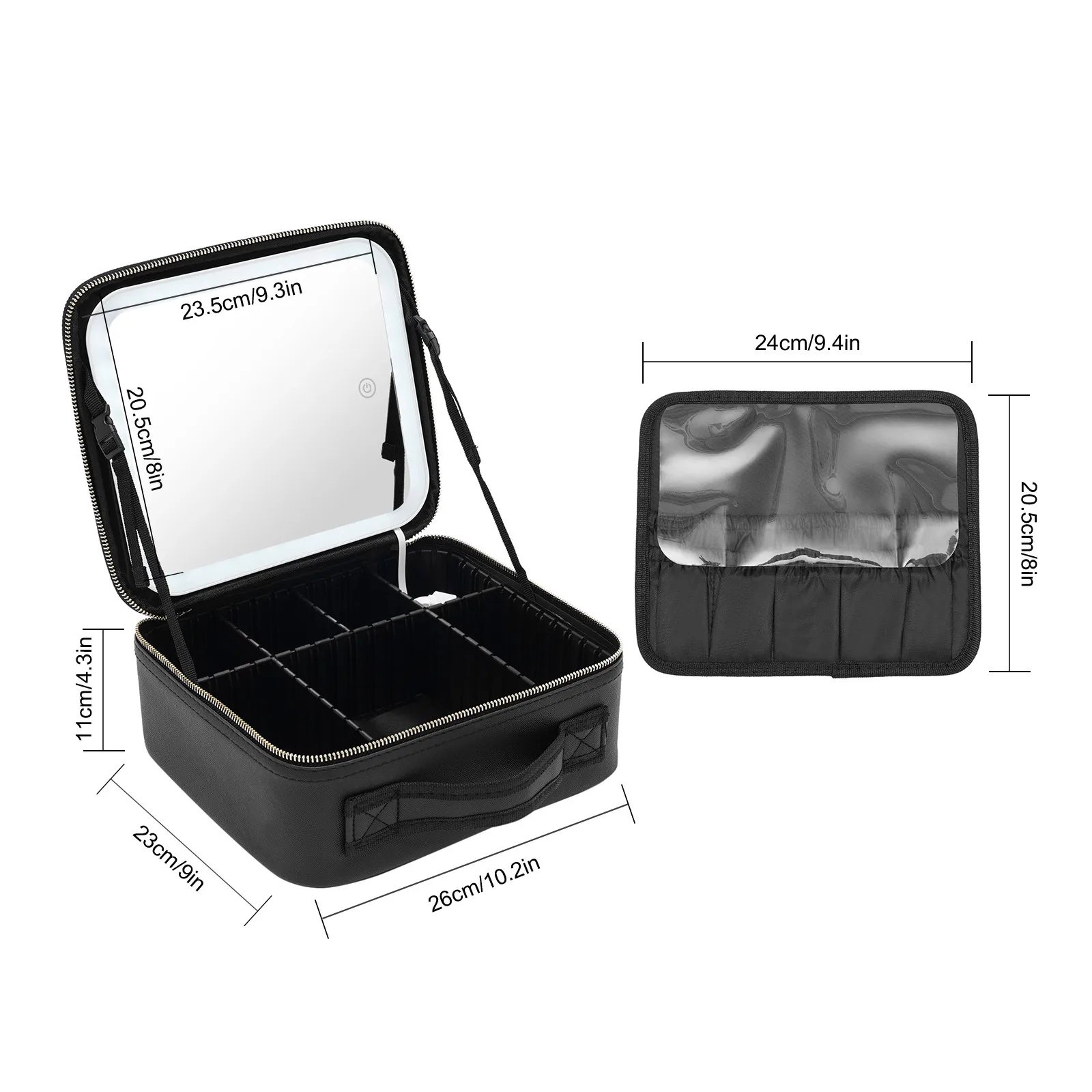 Whether traveling or on business, we all want to show our most sophisticated appearance. Therefore, we have customized this cosmetic bag with a mirror LED light for you. It comes with 3 dimmable LED lights and a mirror, making it a self-contained portable vanity. Many features such as compartmentalized storage and sophisticated appearance make it stand out.