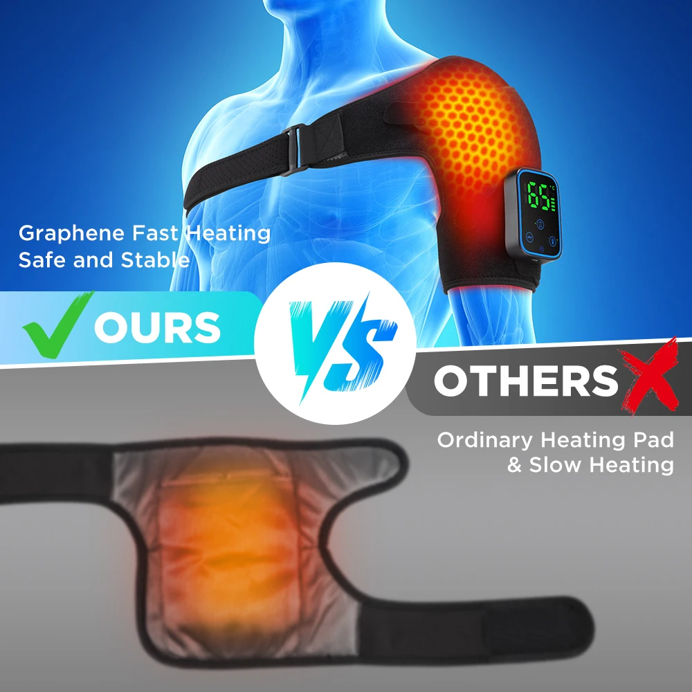 2. The shoulder massage support utilizes advanced graphene heating. This innovative technology heats up faster and more evenly than traditional heating pads, ensuring a stable and durable performance that resists aging.